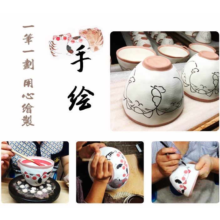 招財貓陶瓷手繪貓咪圖案茶壺組 招財貓茶壺