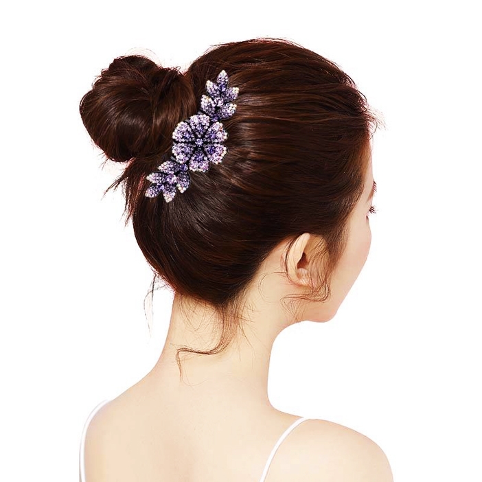 韓版簡約水鑽花髮叉 水鑽花漾固定盤髮髮叉