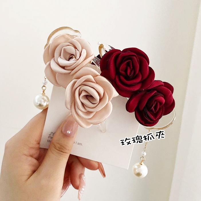 玫瑰3齒抓夾 玫瑰花圈抓夾 氣質優雅後腦杓抓夾