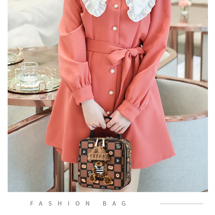 小熊方格包 時尚可愛方格包 可愛毛帽小熊包